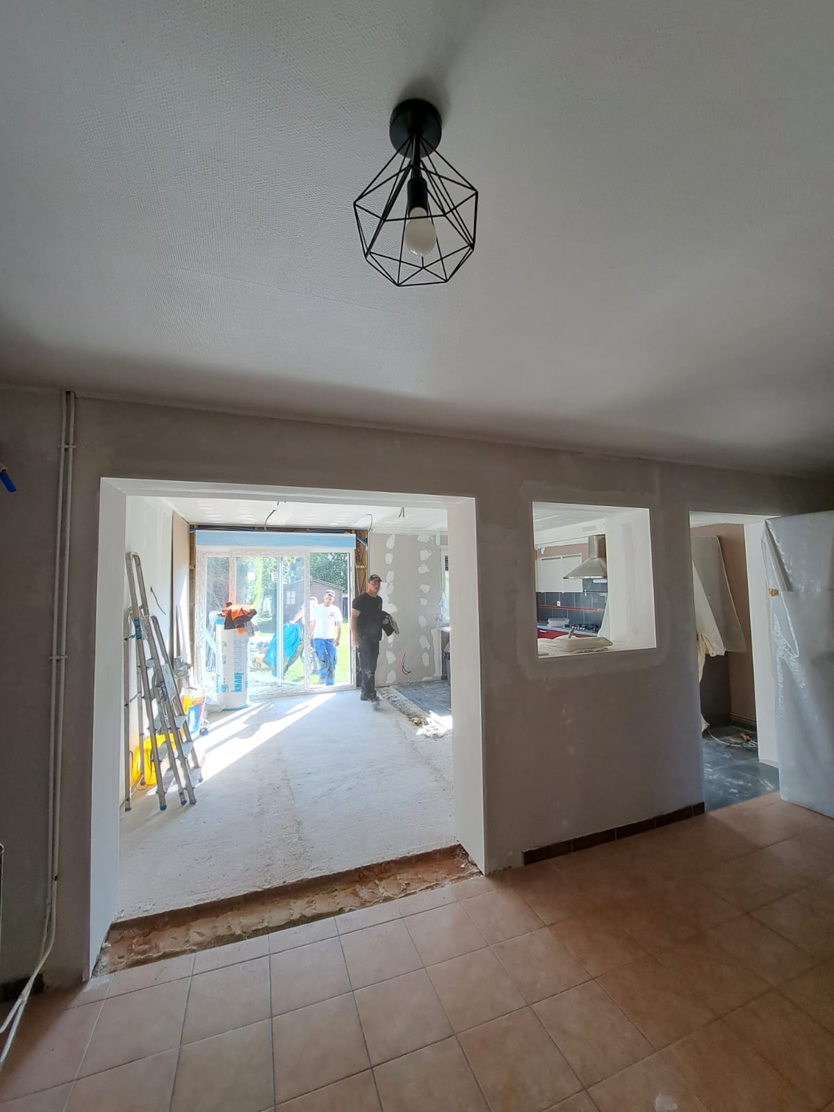 Cette création d’agrandissement à Onnaing a permis d’augmenter la surface habitable et d’apporter un vrai confort au quotidien. grâce à un agrandissement du séjour et de la cuisine.