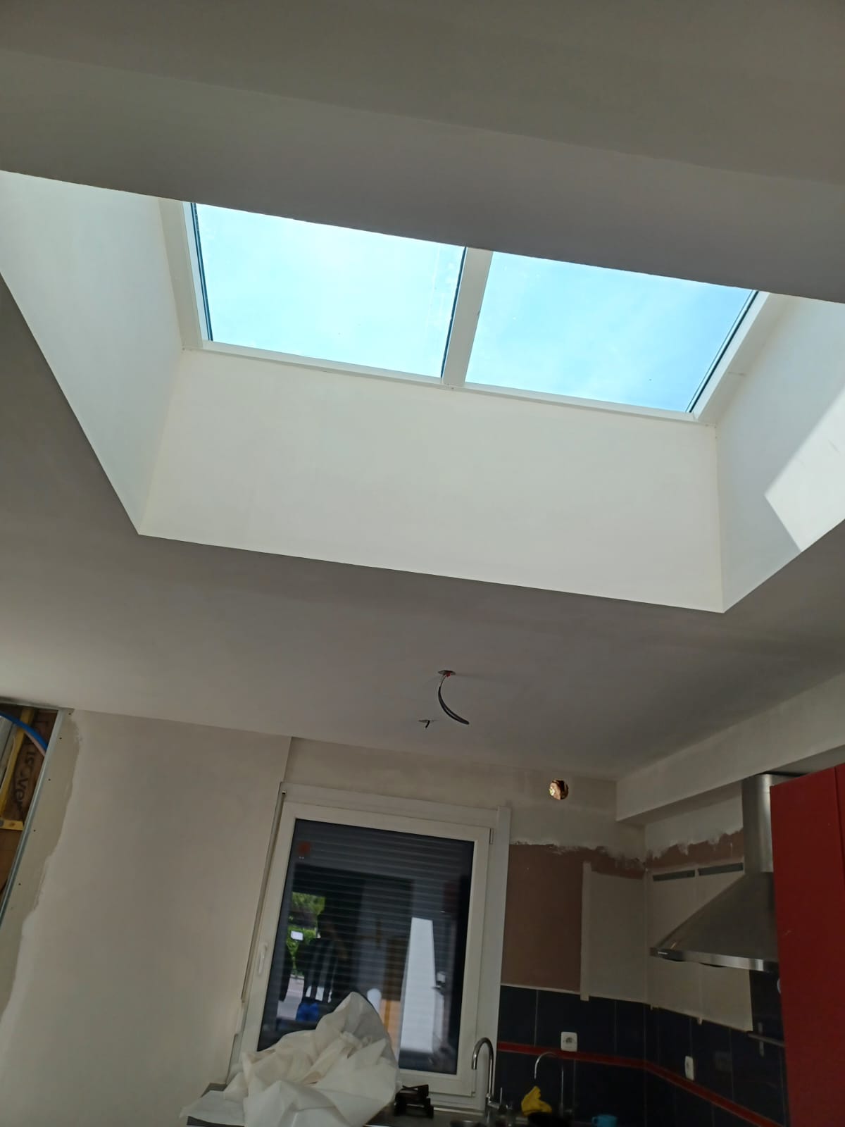 Extension cuisine & séjour – toiture plate isolée + verrière de toit