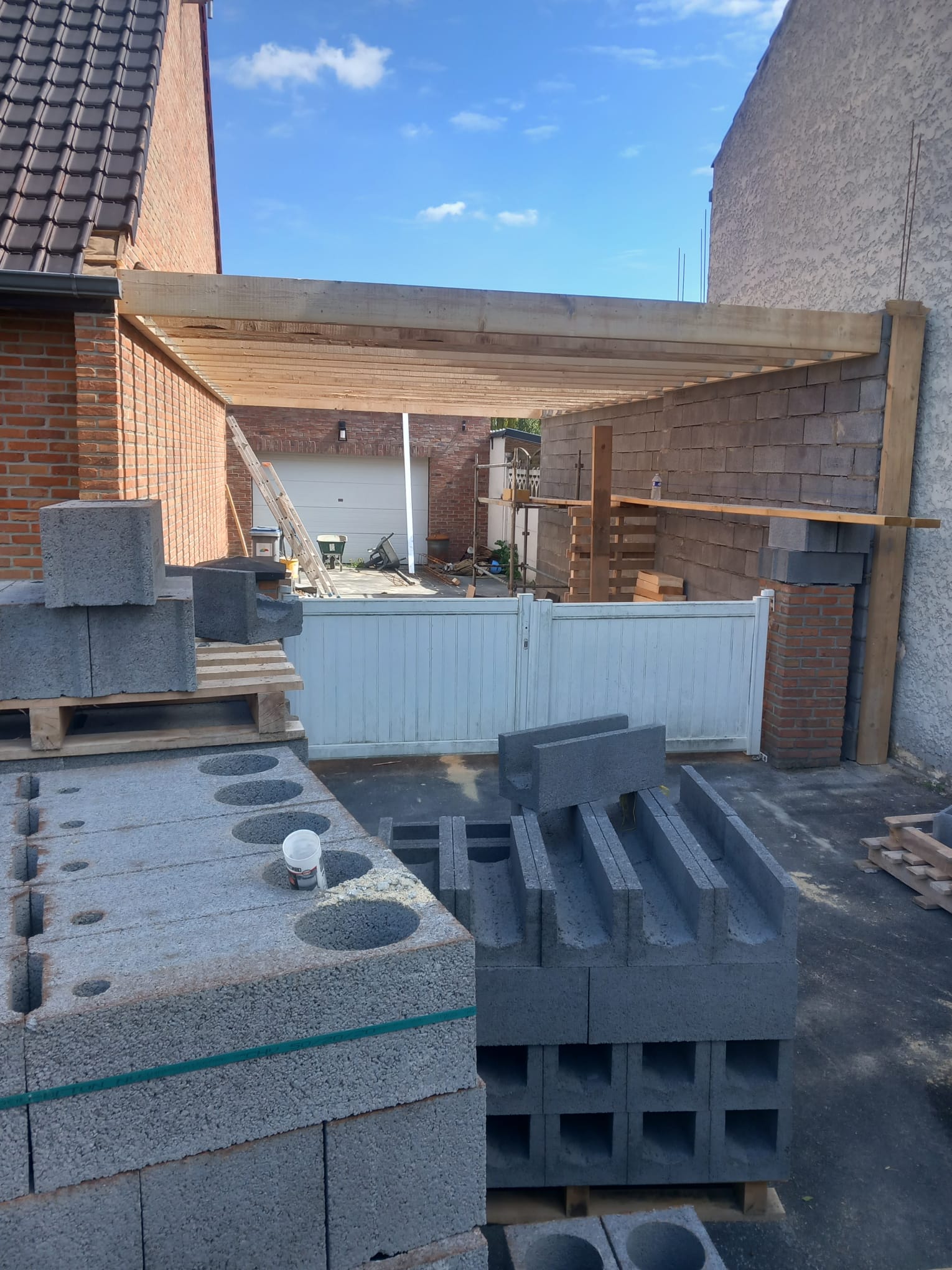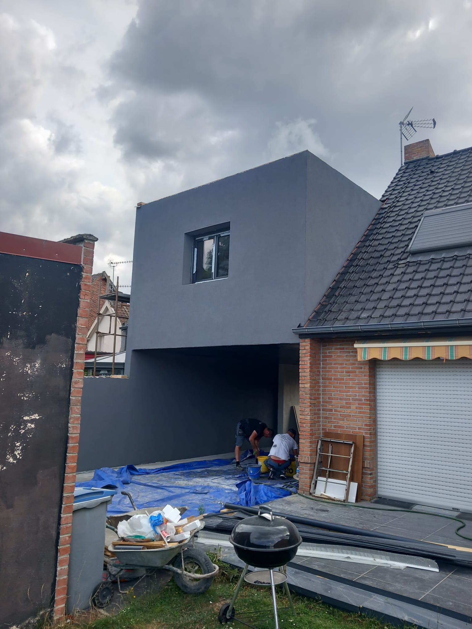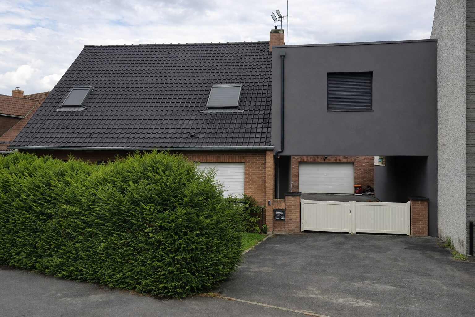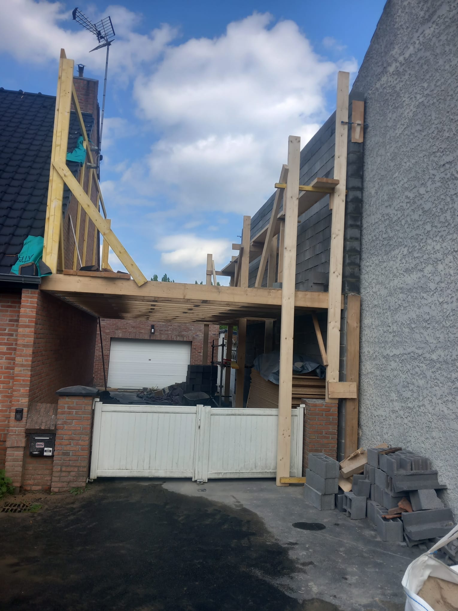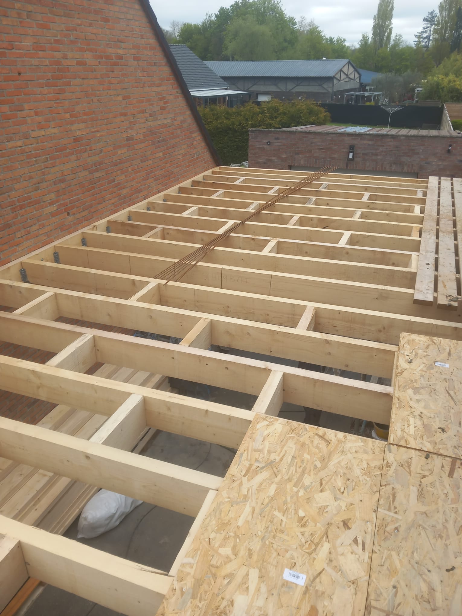 Nous avons récemment réalisé une surélévation avec toit plat à Cuincy afin de créer une suite parentale complète avec salle de douche, tout en conservant l’accès au garage existant.